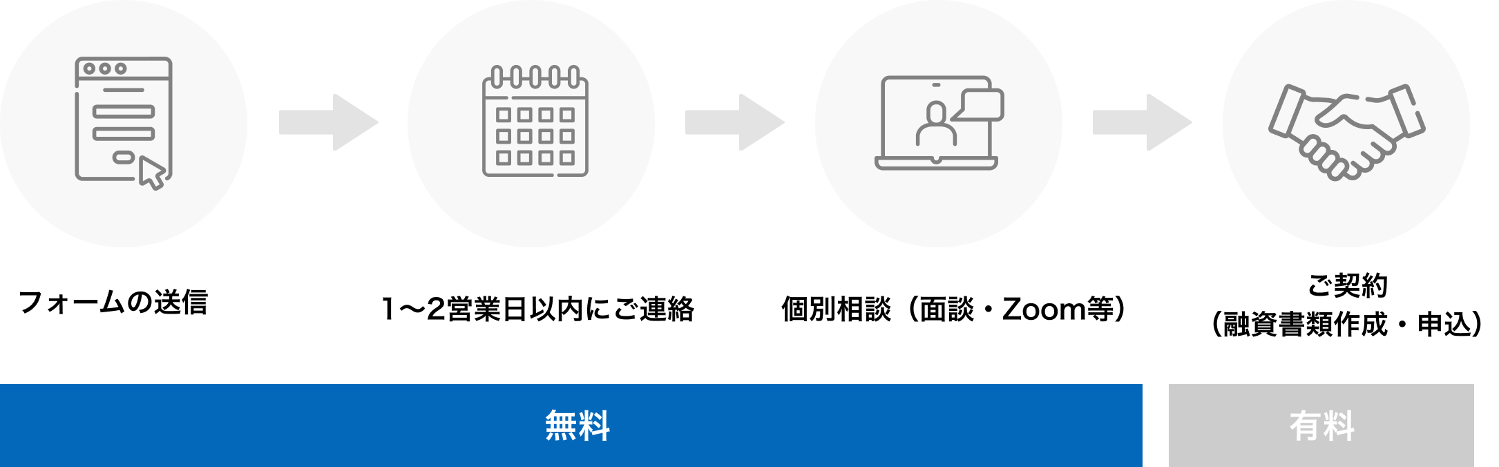 1〜3営業日以内に、弊社担当よりお電話かメールでご連絡させていただきます。 ご入力いただいた情報は、融資情報提供及び支援業務以外には使用いたしませんので、ご安心ください。