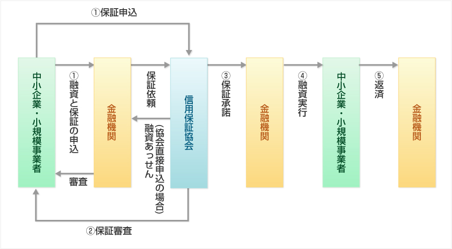 信用保証協会は、信用保証協会法(昭和28年8月10日法律第196号)に基づき、中小企業・小規模事業者の金融円滑化のために設立された公的機関です。