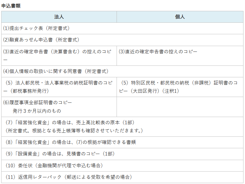 (1)本制度は、大田区が直接融資するものではなく、融資実行の可否及び融資額については金融機関等の審査によります。