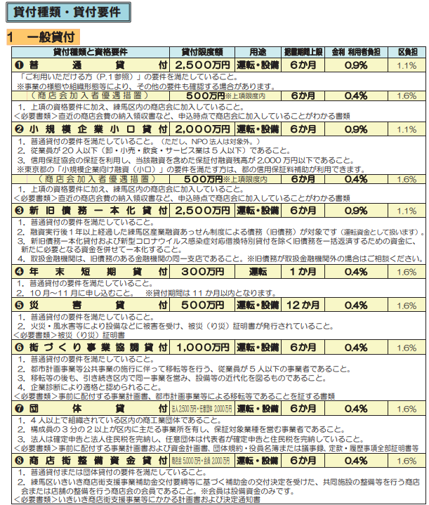 ※「練馬区産業融資あっせんのご案内」より一部抜粋