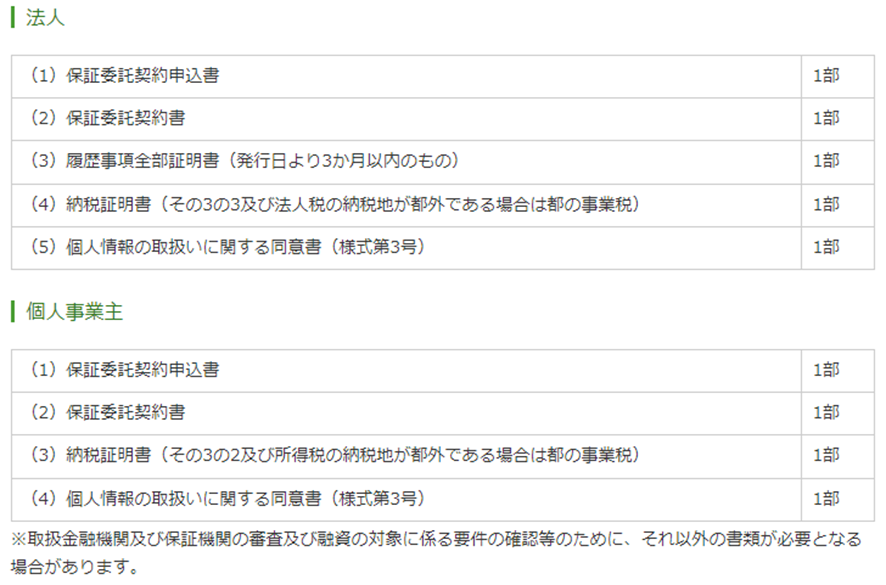 ※取扱金融機関及び保証機関の審査及び融資の対象に係る要件の確認等のために、それ以外の書類が必要となる場合があります。