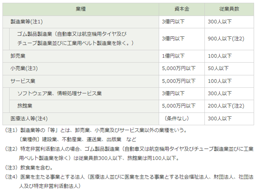 なお、遊興娯楽業のうち風俗関連営業、学校法人、宗教法人、LLP(有限責任事業組合)等は対象とはなりません。