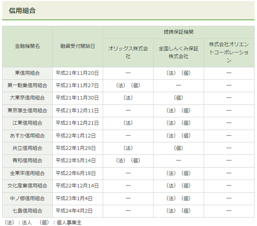 ここでは、「東京プラスサポート融資制度」の「全国しんくみ保証株式会社保証付融資(保証機関 全国しんくみ保証株式会社)」を記載します。