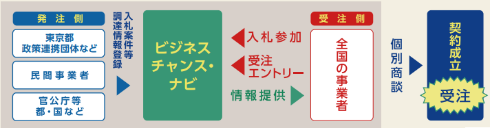 販路開拓融資「ビジネスチャンス・ナビ」は、東京都などの中小企業支援機関が運営する受注機会の拡大を目指す都内中小企業の皆様に利用いただけるメニューです