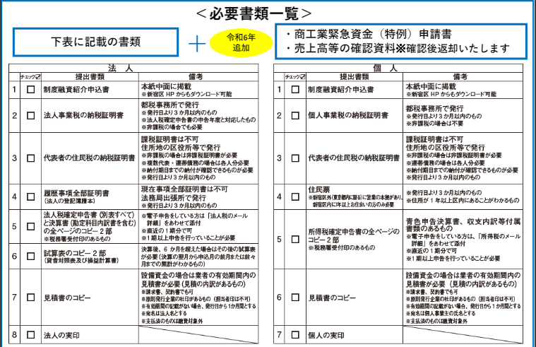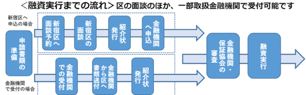 ・区での紹介状発行と金融機関での融資審査は別のものです。区で紹介状発行後、融資が否決されることもあります。予めご了承ください。