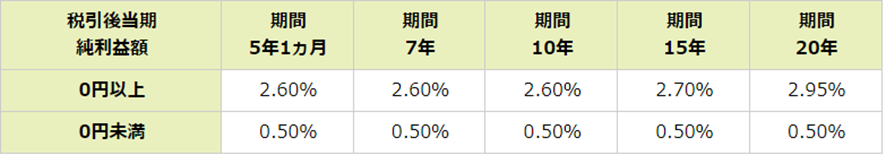 ご融資後3年経過後は、毎年直近決算の業績に応じて、2区分の利率が適用されます。