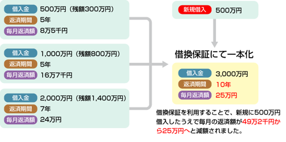 借換のさい追加融資を受けたとしても長期化を図ることで約定返済額の軽減が図れます。